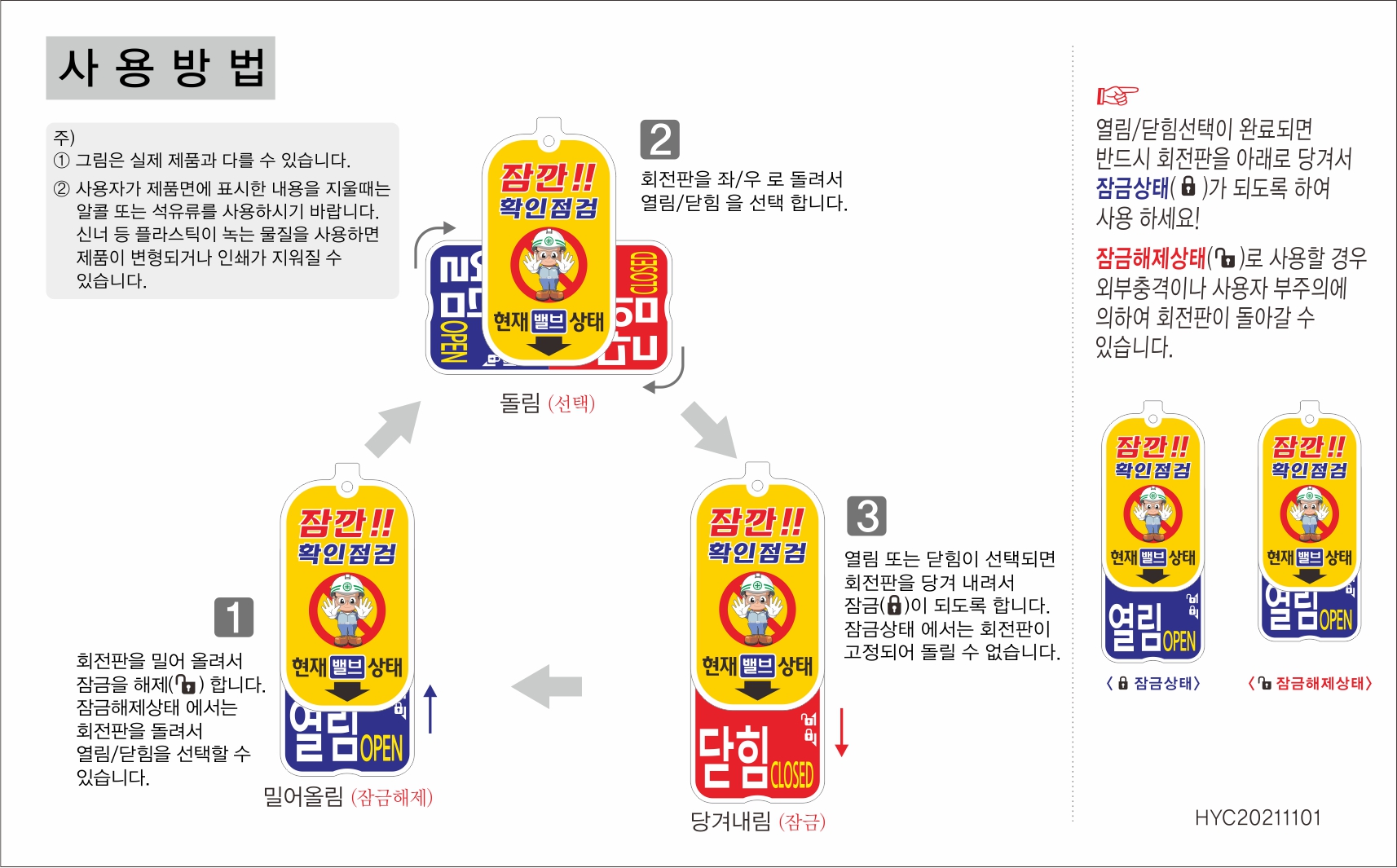 밸브안전, 밸브개폐표지판, 밸브열림닫힘표지판, 밸브표찰, 밸브표지판, 밸브알림이